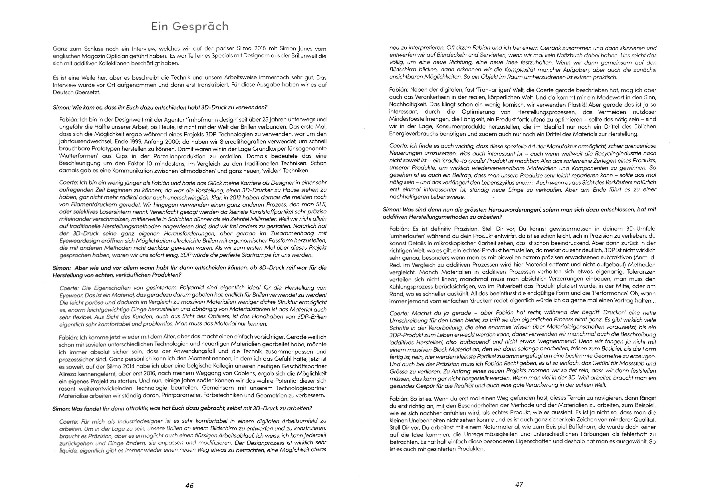 OPTICIAN MAGAZINE, London, Interview Simon Jones, Neon, 2017