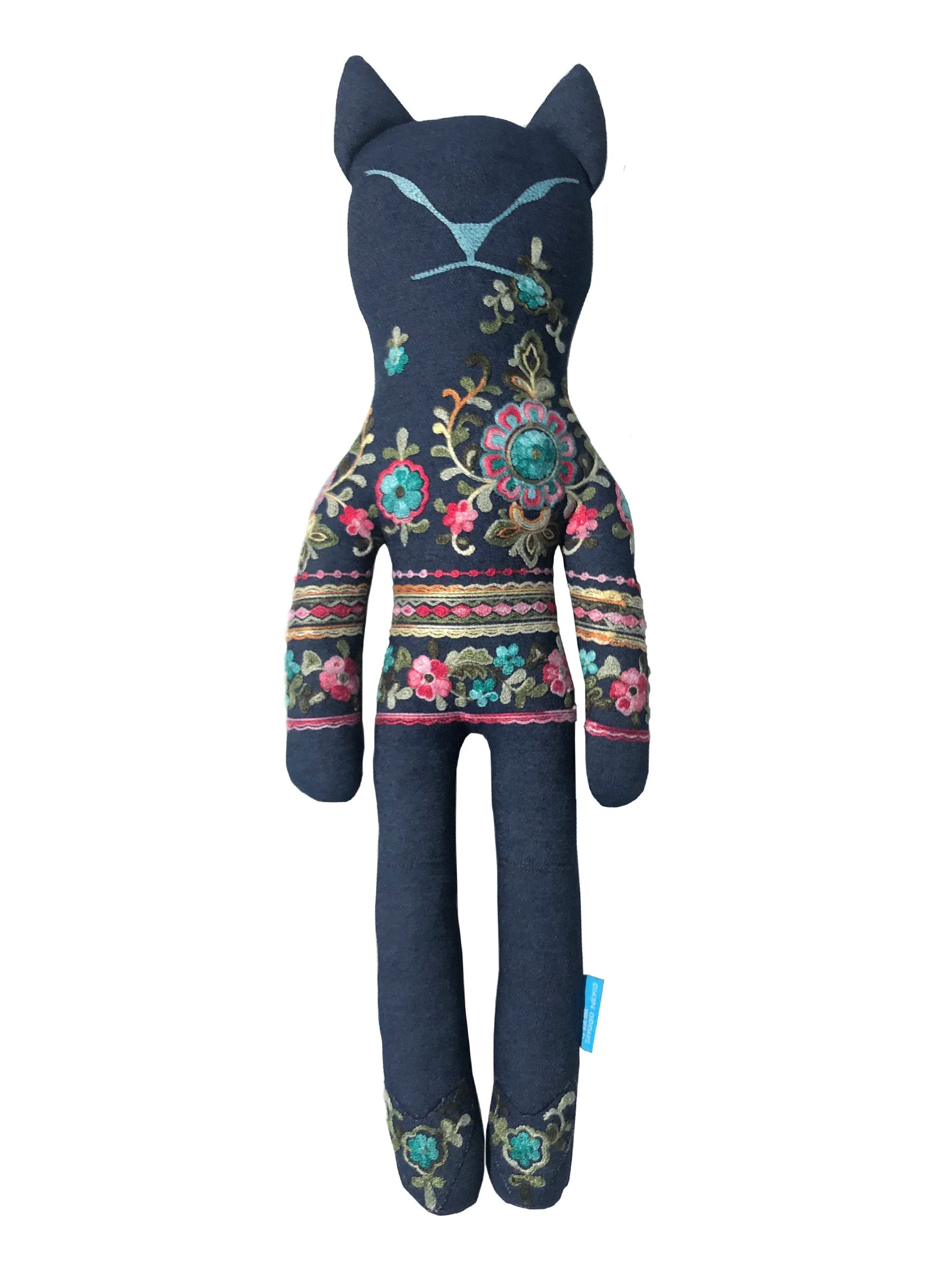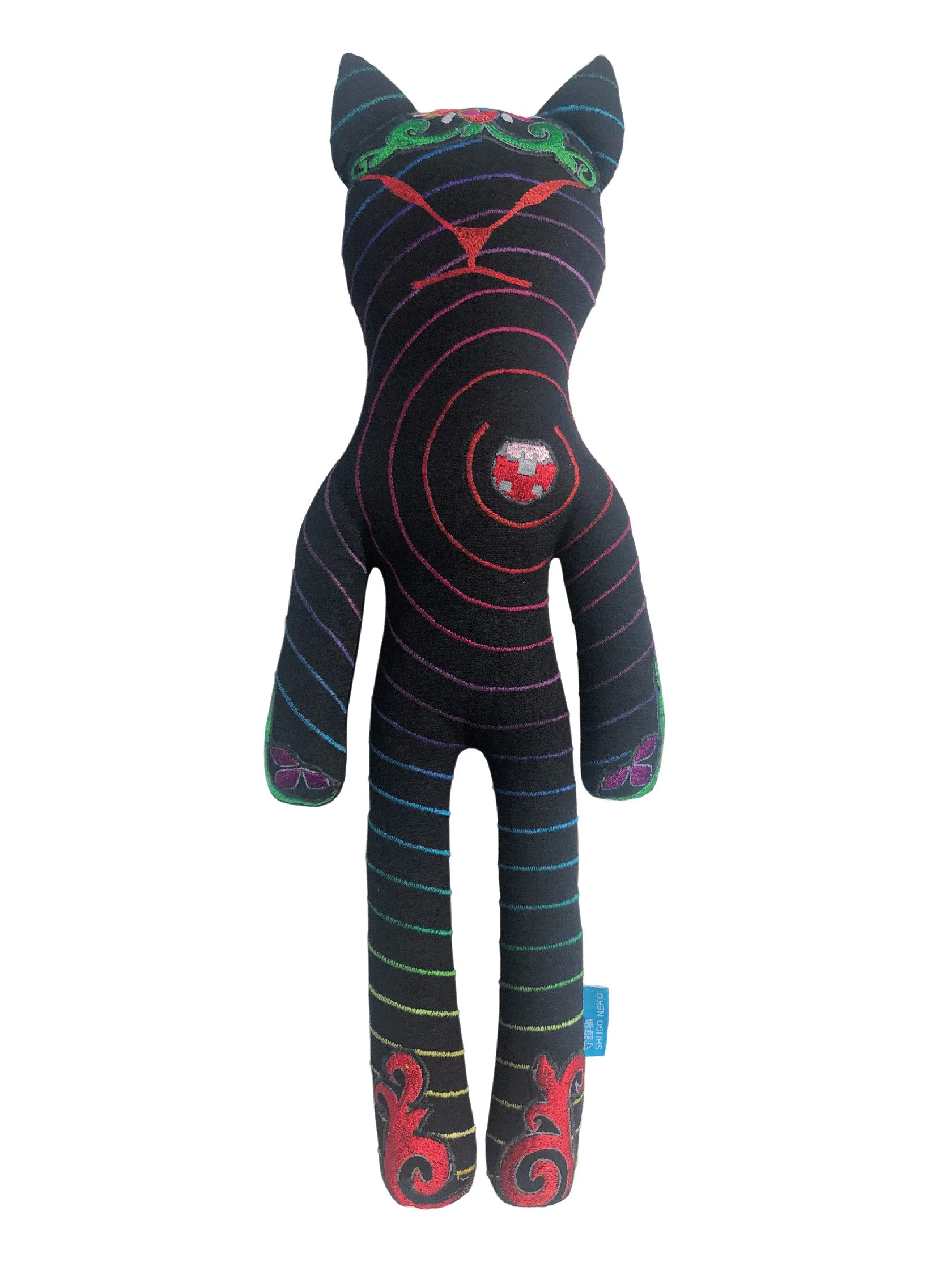 I tot i que estava absolutament segur que no volia tornar a ser un pare de gats, un gatet de carrer petit i fràgil em va trobar i em va tornar a donar alegria i responsabilitat. Aquest gatet és el meu gat tutor personal, el meu shugo neko, que vetlla per mi. Ell està creixent ràpidament, es fa més fort i més estrany cada dia, reflectint el meu progrés. (EDIT: És molt rar que els animals rescatats i adoptats tornin a ser posats en adopció inesperadament. Això sovint és molt traumàtic per a aquestes criatures, ja que experimenten la segona gran decepció de les seves vides. Quan vaig rebre la informació que el germà bessó de Neko Ninja estava buscant una nova llar, de seguida el vaig portar a mi. Els dos germans estan feliçment reunits i inseparables.) Quan necessitava protecció, em van demanar que protegís, quan necessitava amor, havia de començar a estimar de nou. El veig com el meu guàrdia espiritual, em protegeix d'alguna manera. La seva energia positiva, la seva energia abundant, és una inspiració i un repte permanents i per això ara tradueixo tot això al meu projecte SHUGONEKOTM . Permeteu-me explicar-ho en poques paraules. A part dels encantadors però d'alguna manera omnipresents gats que fa l'ullet, que solen convidar a la prosperitat i la salut, veig les meves petites peces d'art més com una manifestació d'un bon esperit de casa, un tòtem, un talismà, un encant de teixit felí. Les escultures fetes a mà, semblants a nines, fan uns 60-66 cm d'alçada. Utilitzo teixit vintage gruixut, lli japonès, brodat turc, ganxet, puntes de bolillos, alguns d'ells amb estampats moderns, etc. Els detalls de la cara i l'obertura del cor són individuals, cosits amb la meva màquina de cosir, però no amb una màquina de cosir per ordinador.
